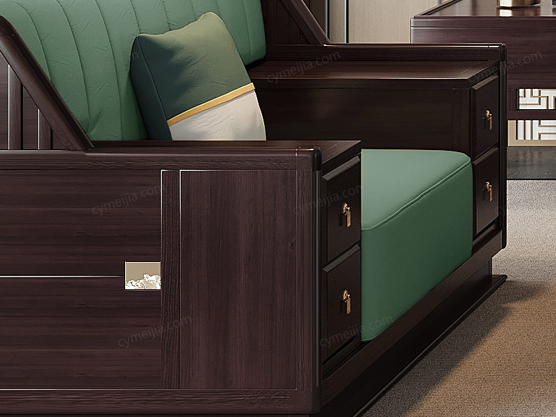 | 产品材质 : | 进口乌金木+仿真皮+高密度海绵+五金装饰+实木多层板 |