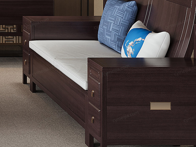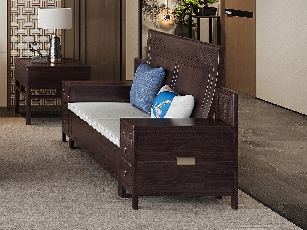 | 产品材质 : | 进口乌金木+棉麻+高密度海绵+五金装饰+实木多层板 |