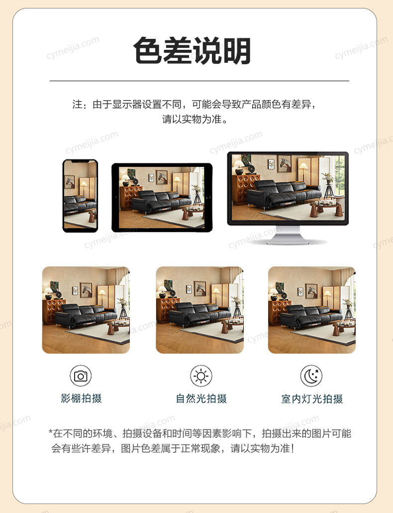 | 保养说明 : | 避免阳光长时间直射,以免造成产品局部褪色或泛黄,并保持使用环境清洁、干燥、通风,以免受潮。 |