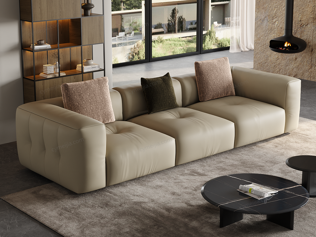 | 产品材质 : 全真皮+羽绒抱枕+高密度海绵+俄罗斯落叶松实木框架 | 包件数 : 3 | 包装体积(m3) : 2.64 | |