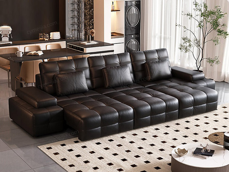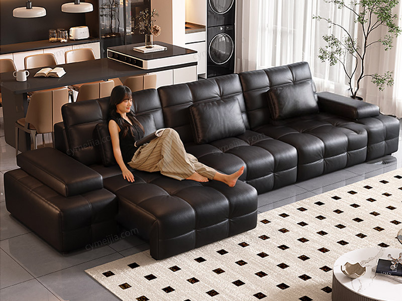 | 产品材质 : | 接触面进口头层黄牛皮+羽绒靠包/抱枕+高回弹海绵+俄罗斯落叶松实木框架 |