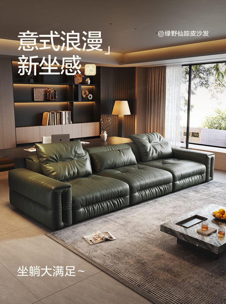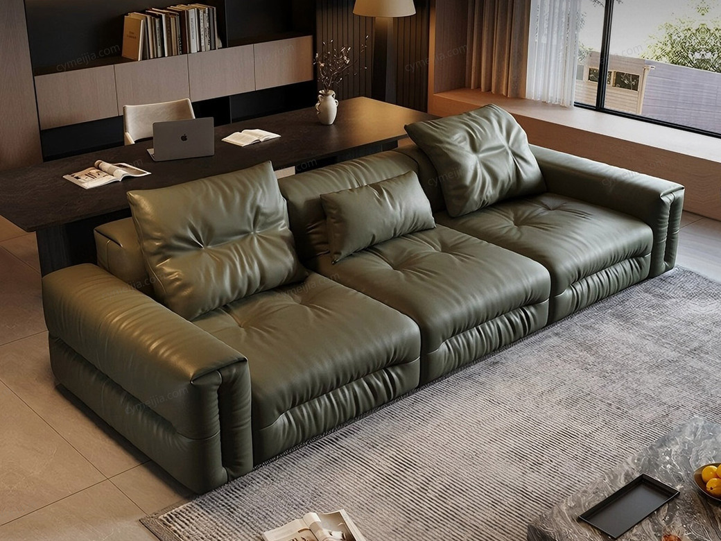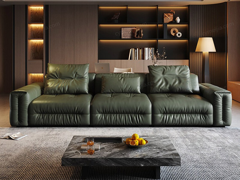 | 产品材质 : | 接触面进口头层黄牛皮+羽绒+高回弹海绵+俄罗斯落叶松实木框架 |