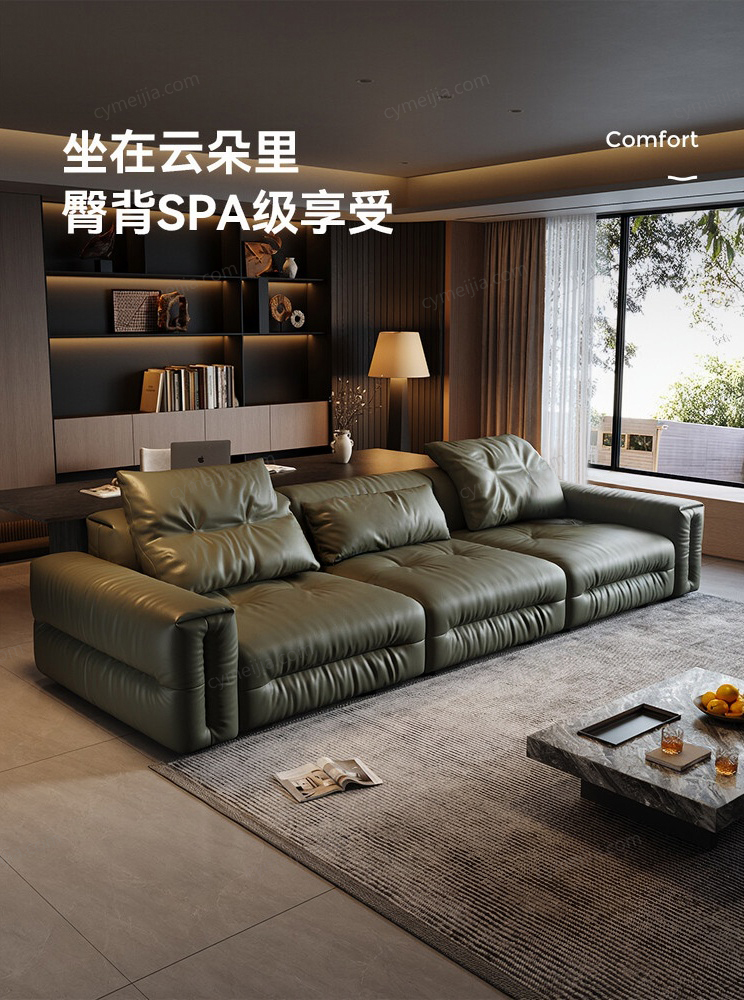 | 产品材质 : 接触面进口头层黄牛皮+羽绒+高回弹海绵+俄罗斯落叶松实木框架 | 包件数 : 2 | 包装体积(m3) : 2.16 | |