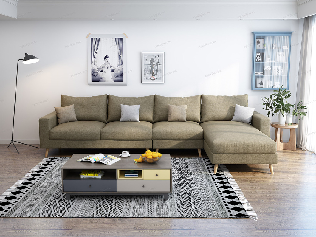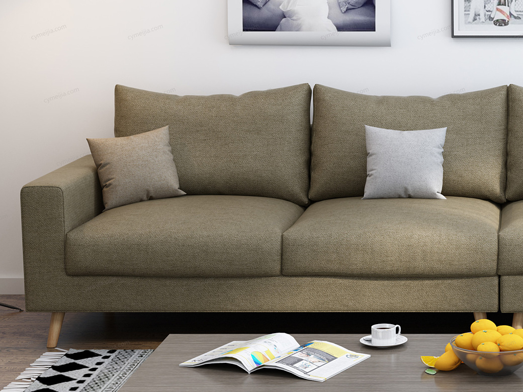 | 产品材质 : | 棉麻+高密度海绵+俄罗斯落叶松实木框架+实木脚 |
