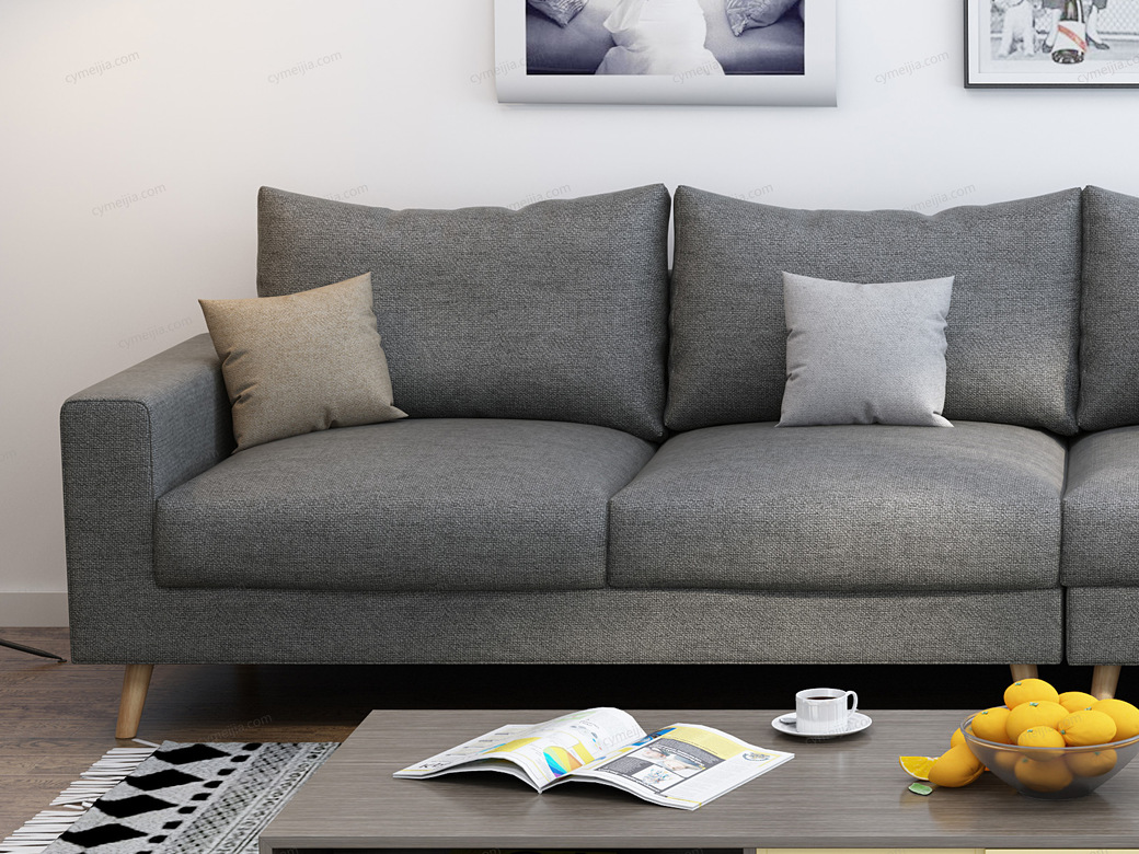 | 产品材质 : | 棉麻+高密度海绵+俄罗斯落叶松实木框架+实木脚 |