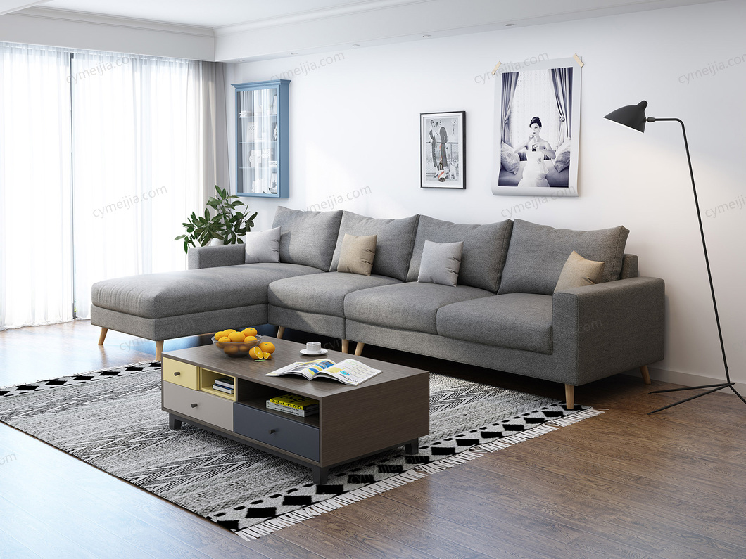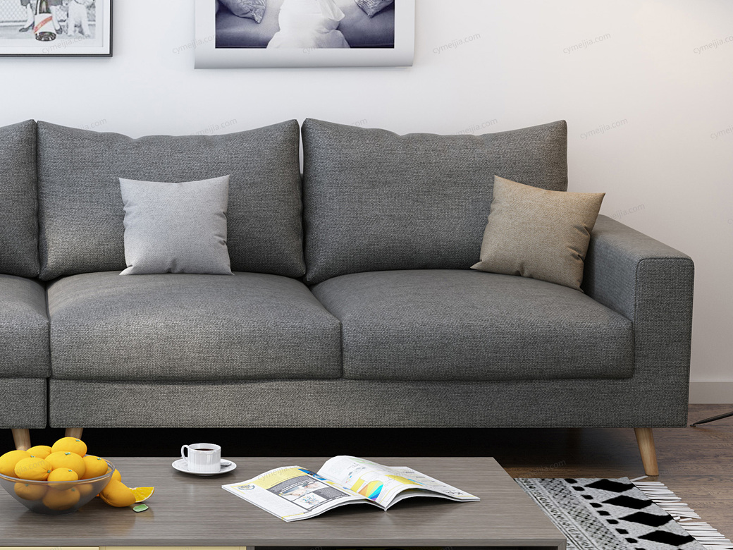 | 产品材质 : | 棉麻+高密度海绵+俄罗斯落叶松实木框架+实木脚 |