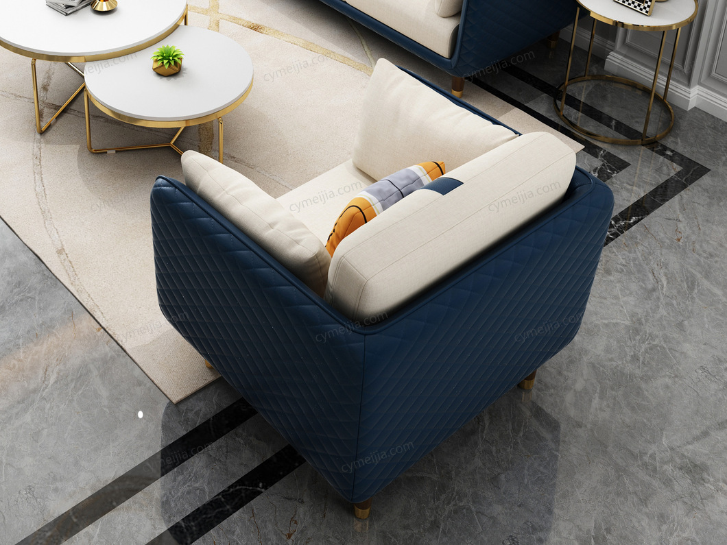 | 产品材质 : | 边框优质纳帕皮+棉麻布艺+高密度海绵靠枕+俄罗斯落叶松实木框架+不锈钢镀金包裹实木脚 |