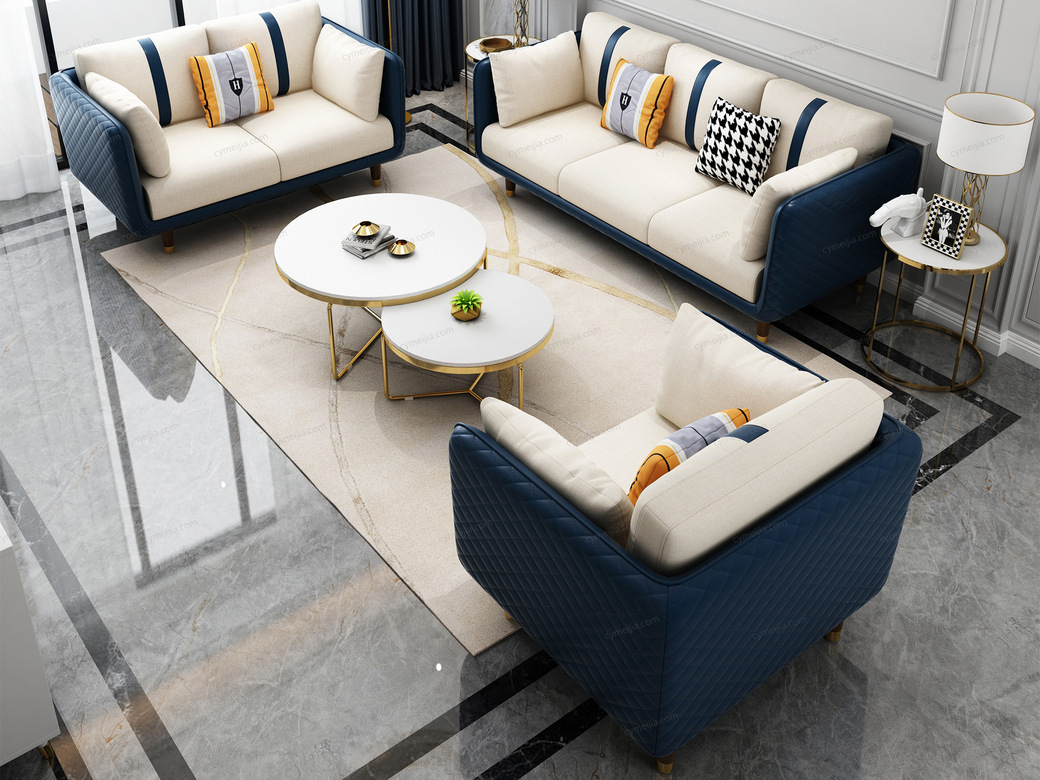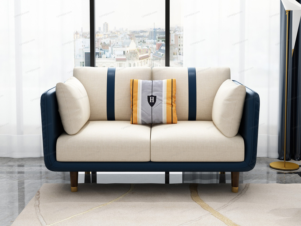 | 产品材质 : | 边框优质纳帕皮+棉麻布艺+高密度海绵靠枕+俄罗斯落叶松实木框架+不锈钢镀金包裹实木脚 |