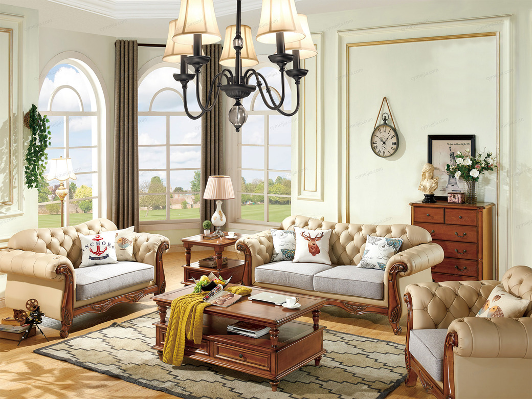 | 产品材质 : | 仿真纳帕皮(靠背)+布艺(座包)+北美鹅掌楸木外架+四面抛光全实木内架+45密度高回弹海绵+环保水性油漆涂装+纯铜装饰钉 |