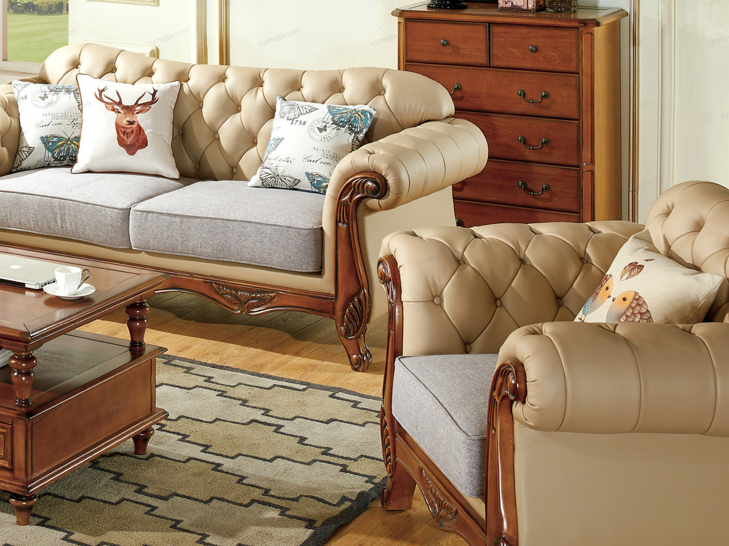| 产品材质 : 仿真纳帕皮(靠背)+布艺(座包)+北美鹅掌楸木外架+四面抛光全实木内架+45密度高回弹海绵+环保水性油漆涂装+纯铜装饰钉 | 包件数 : 1 | 包装体积(m3) : 1.08 | |