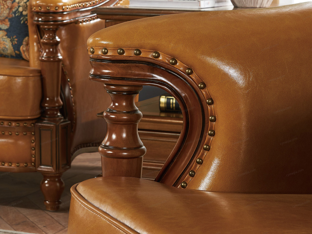 | 产品材质 : | 进口头层黄牛皮(接触面)+北美鹅掌楸木外架+四面抛光全实木内架+45密度高回弹海绵+环保水性油漆涂装+纯铜装饰钉 |