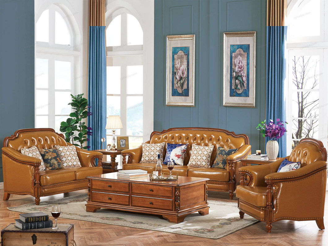 | 产品材质 : 进口头层黄牛皮(接触面)+北美鹅掌楸木外架+四面抛光全实木内架+45密度高回弹海绵+环保水性油漆涂装+纯铜装饰钉 | 包件数 : 3 | 包装体积(m3) : 7.2 | |