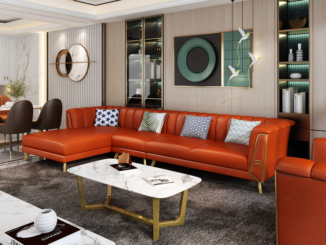| 产品材质 : 底框架优质亮光加密仿皮+人体接触面优质亮光仿真皮+超纤皮(坐包面、坐包前、扶手面、靠背面)+抱枕涤棉布料填充A+太空棉+抛光实木内架(桉木为主)+蛇形弹簧+高弹力橡筋+高密度纯海绵+扶手镶钛金五金+可拆装镀金五金脚 | 包件数 : 3 | 包装体积(m3) : 2.34 | |