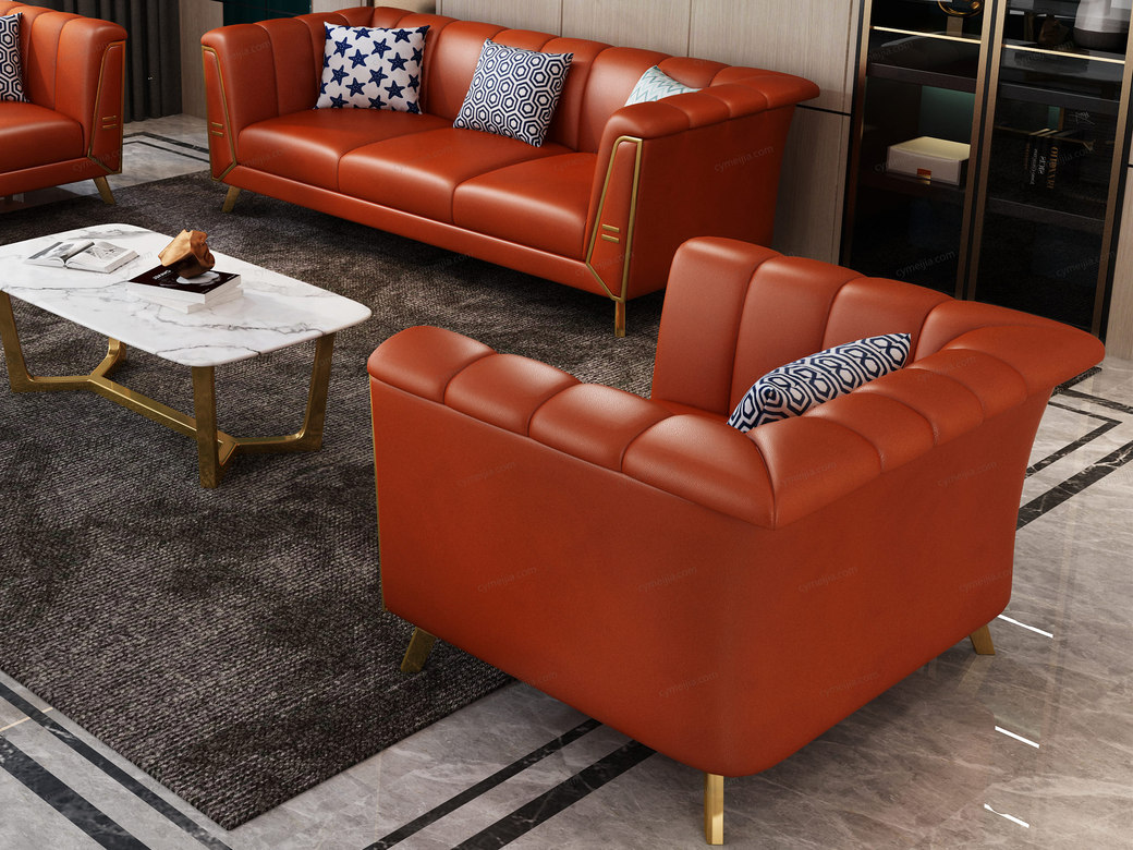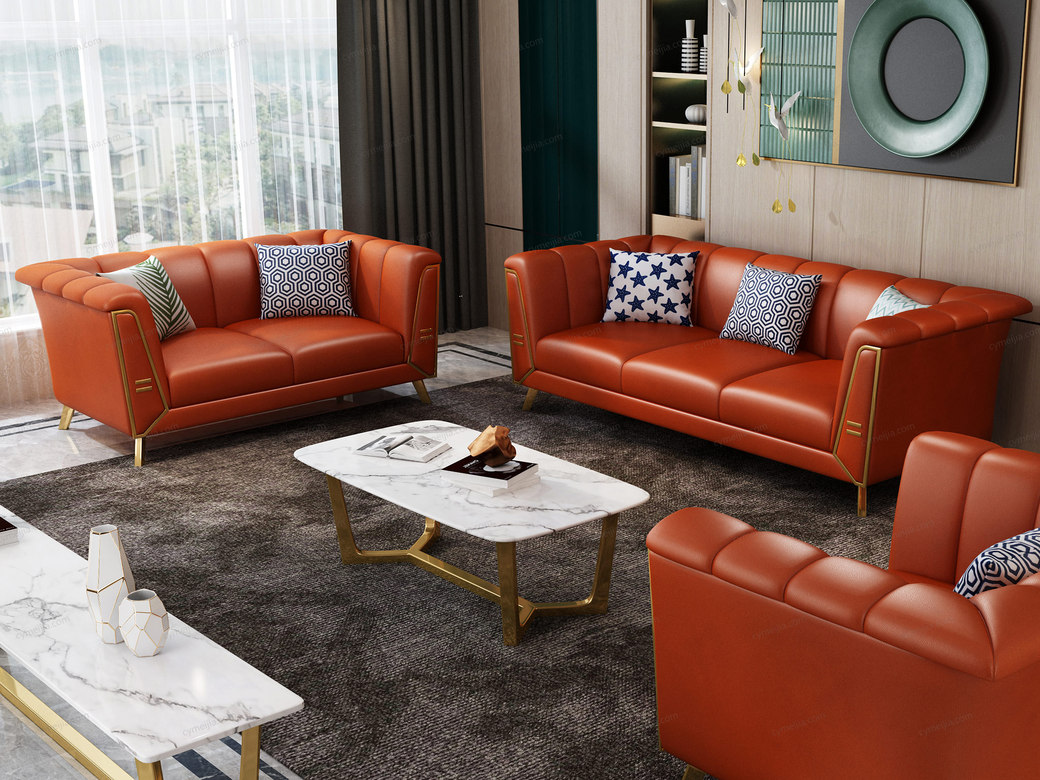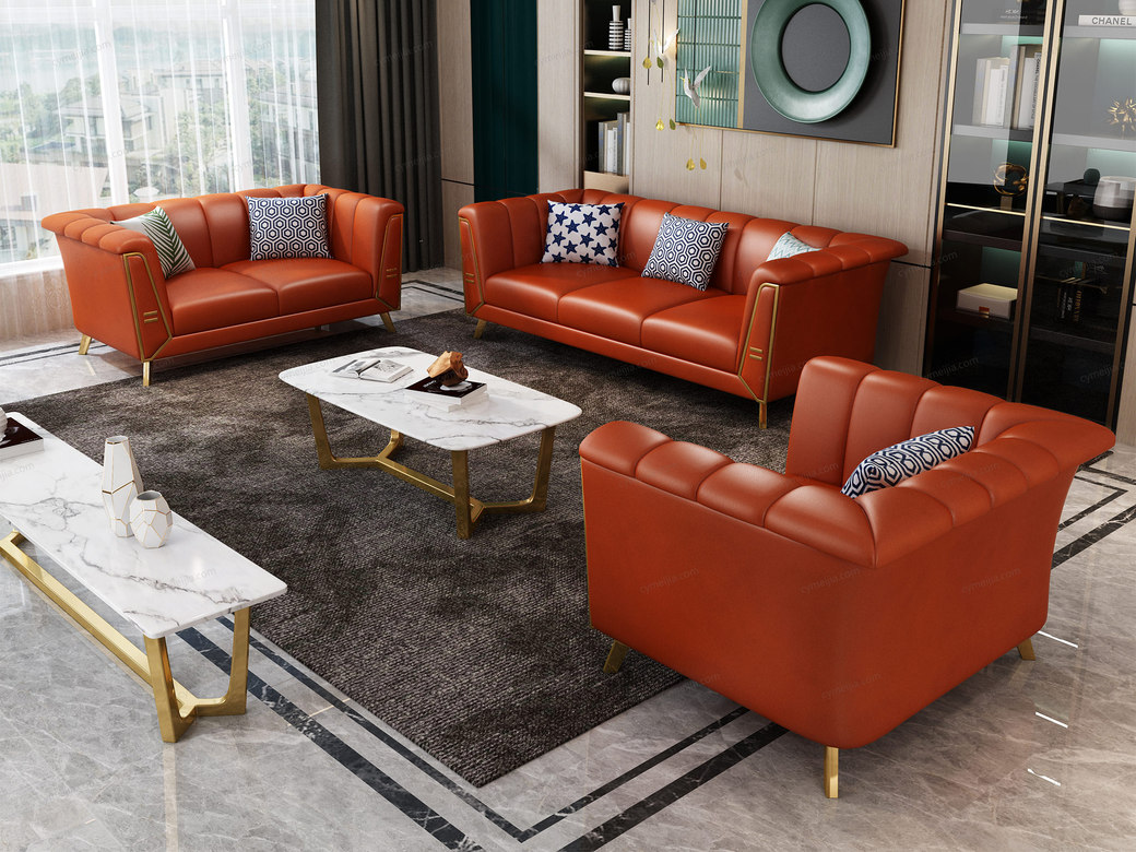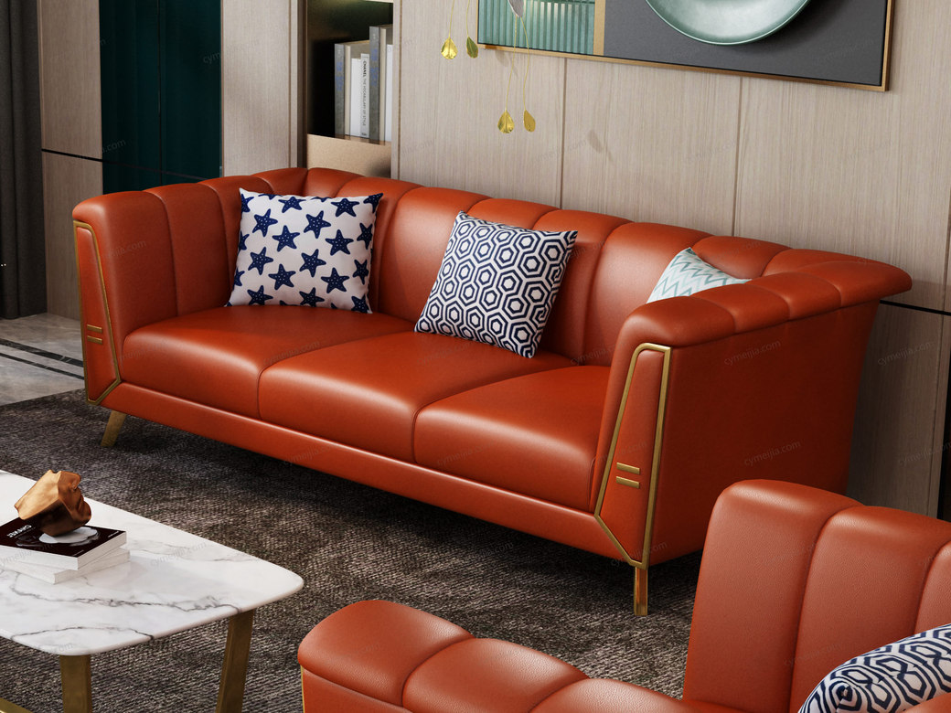 | 产品材质 : 底框架优质亮光加密仿皮+人体接触面优质亮光仿真皮+超纤皮(坐包面、坐包前、扶手面、靠背面)+抱枕涤棉布料填充A+太空棉+抛光实木内架(桉木为主)+蛇形弹簧+高弹力橡筋+高密度纯海绵+扶手镶钛金五金+可拆装镀金五金脚 | 包件数 : 3 | 包装体积(m3) : 2.40 | |