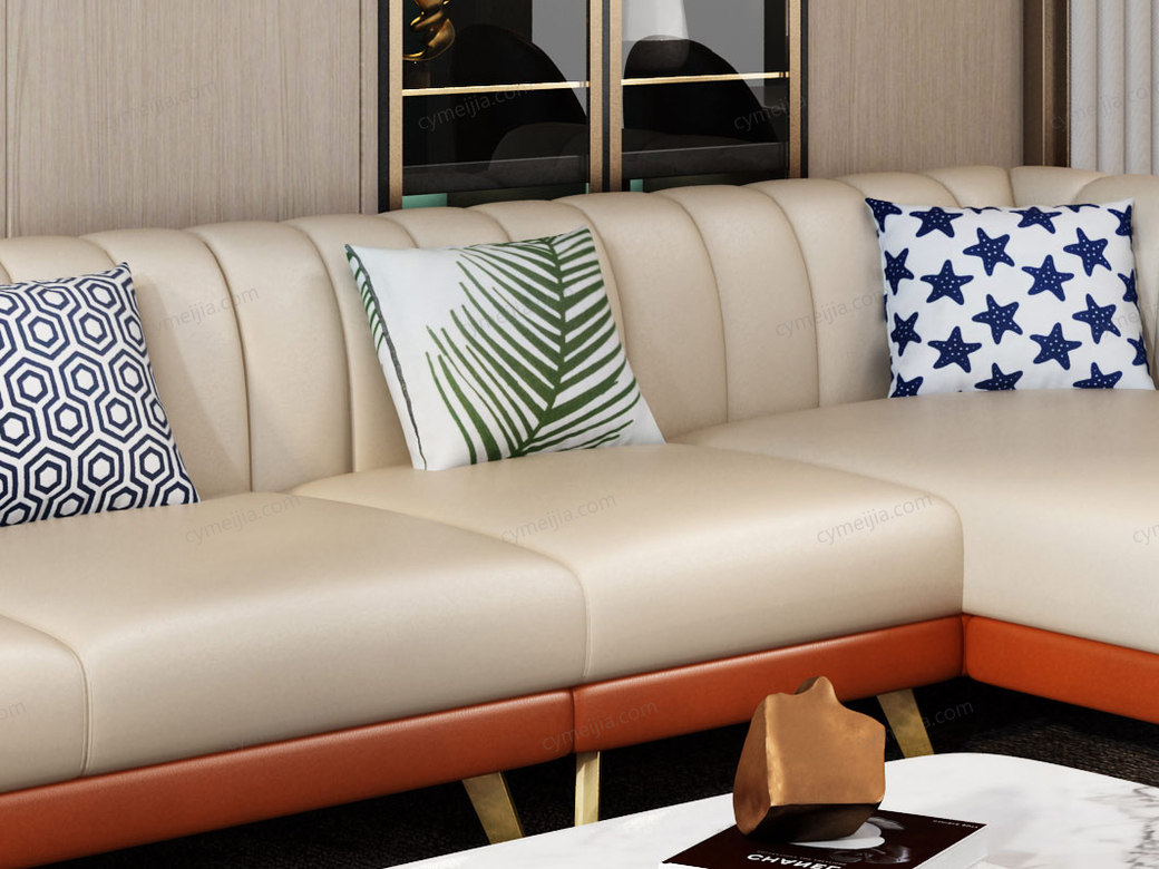 | 产品材质 : | 底框架优质亮光加密仿皮+人体接触面优质亮光仿真皮+超纤皮(坐包面、坐包前、扶手面、靠背面)+抱枕涤棉布料填充A+太空棉+抛光实木内架(桉木为主)+蛇形弹簧+高弹力橡筋+高密度纯海绵+扶手镶钛金五金+可拆装镀金五金脚 |