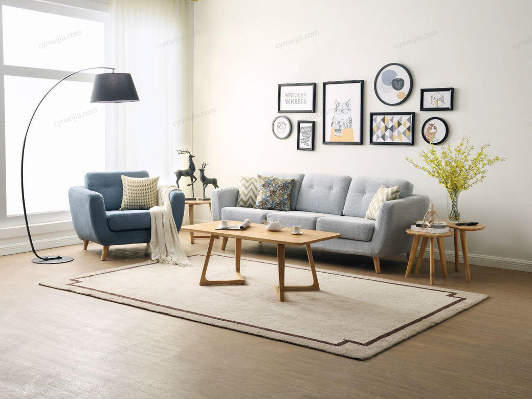 | 产品材质 : | 棉麻+高密度海绵+俄罗斯落叶松实木框架+实木脚 |