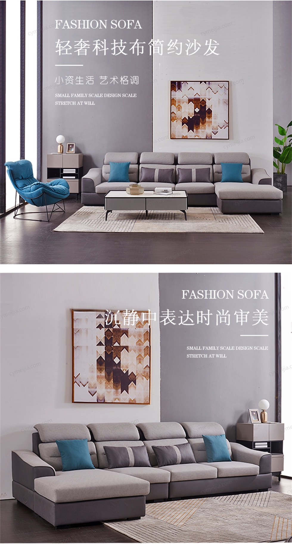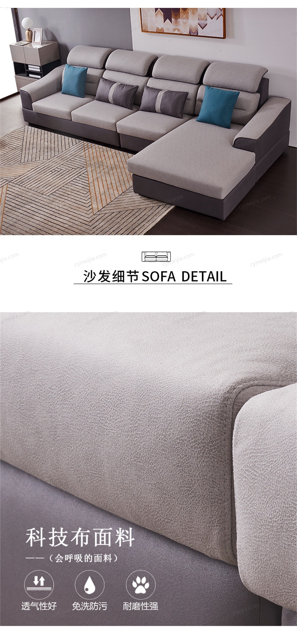 | 产品材质 : | 科技布+高密度海绵+俄罗斯落叶松实木框架 |