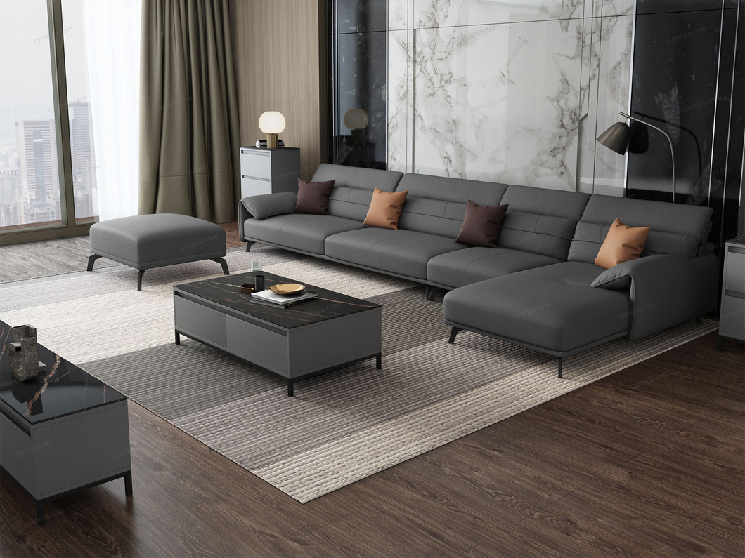 | 产品材质 : | 科技布+羽绒靠包/头枕/扶手+高密度海绵+俄罗斯落叶松实木框架+五金脚 |