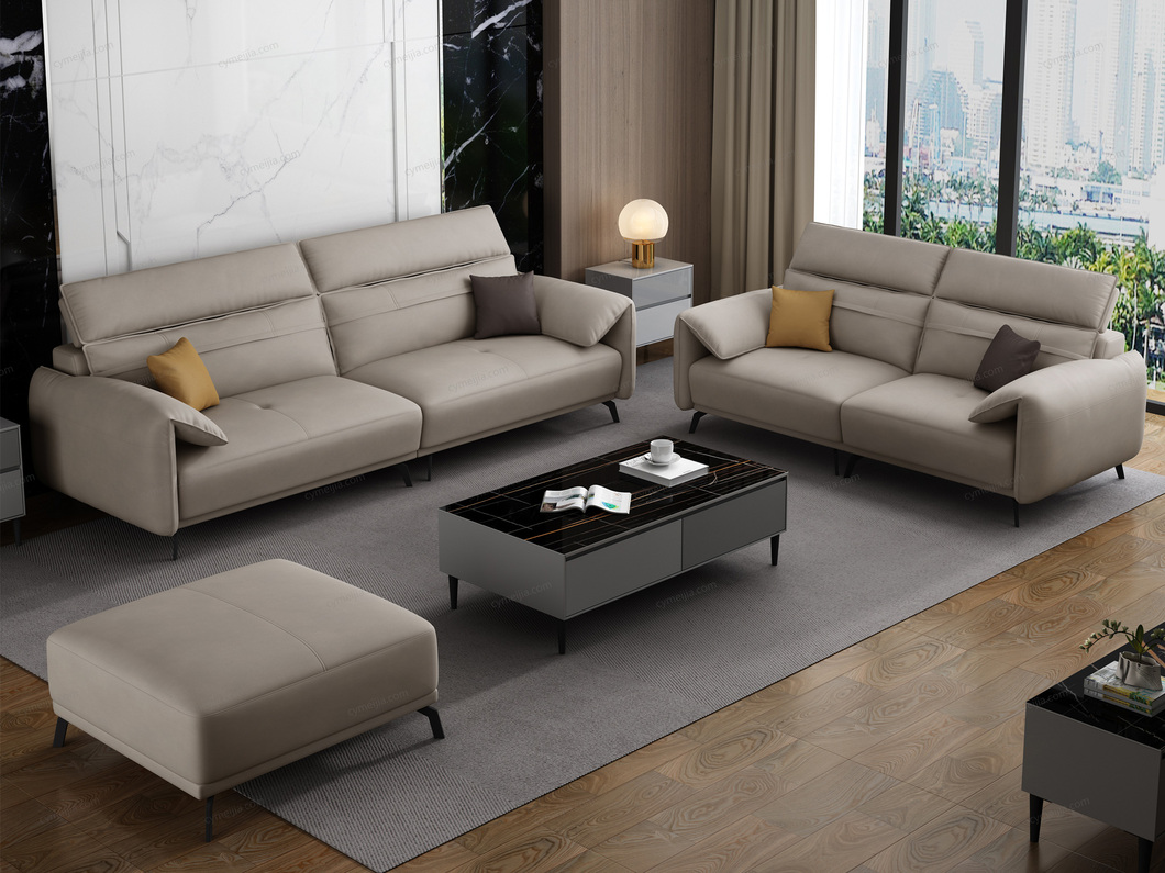 | 产品材质 : | 科技布+羽绒靠包扶手+高密度海绵+俄罗斯落叶松实木框架+五金脚 |