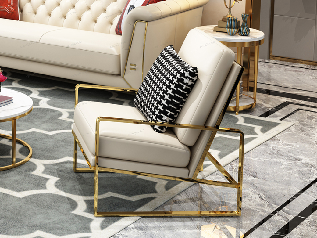 | 产品材质 : | 仿真皮+高密度海绵+俄罗斯落叶松实木框架+不锈钢镀金 |