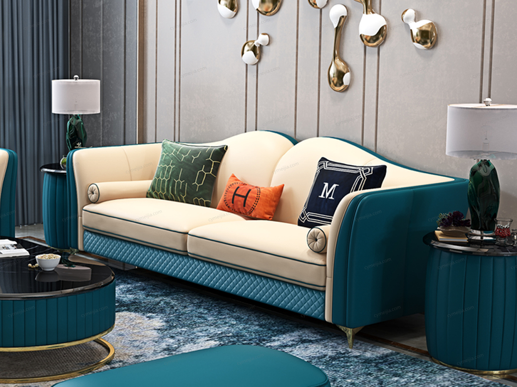 | 产品材质 : | 进口头层黄牛皮(接触面)+仿真皮(非接触面)+高密度海绵+俄罗斯落叶松实木框架+不锈钢镀金 |