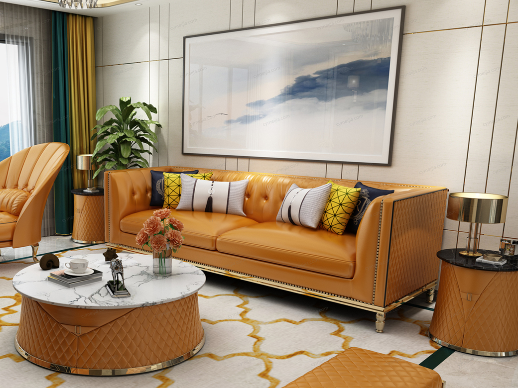 | 产品材质 : | 仿真皮+高密度海绵+俄罗斯落叶松实木框架+不锈钢镀金 |
