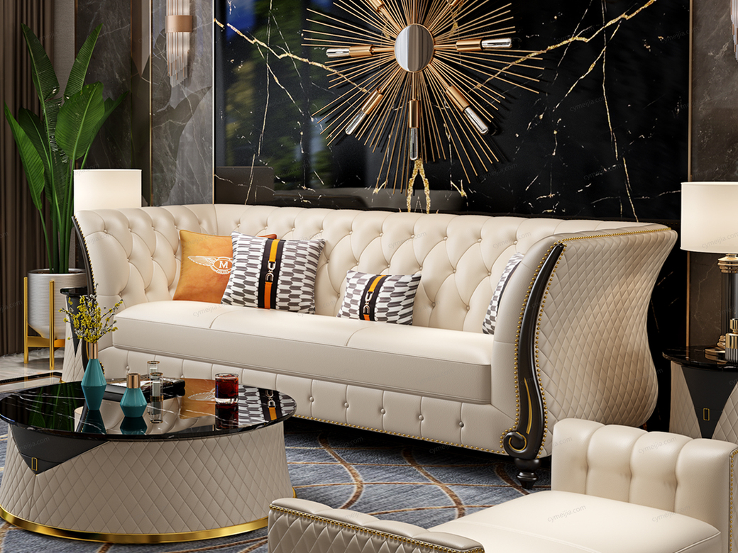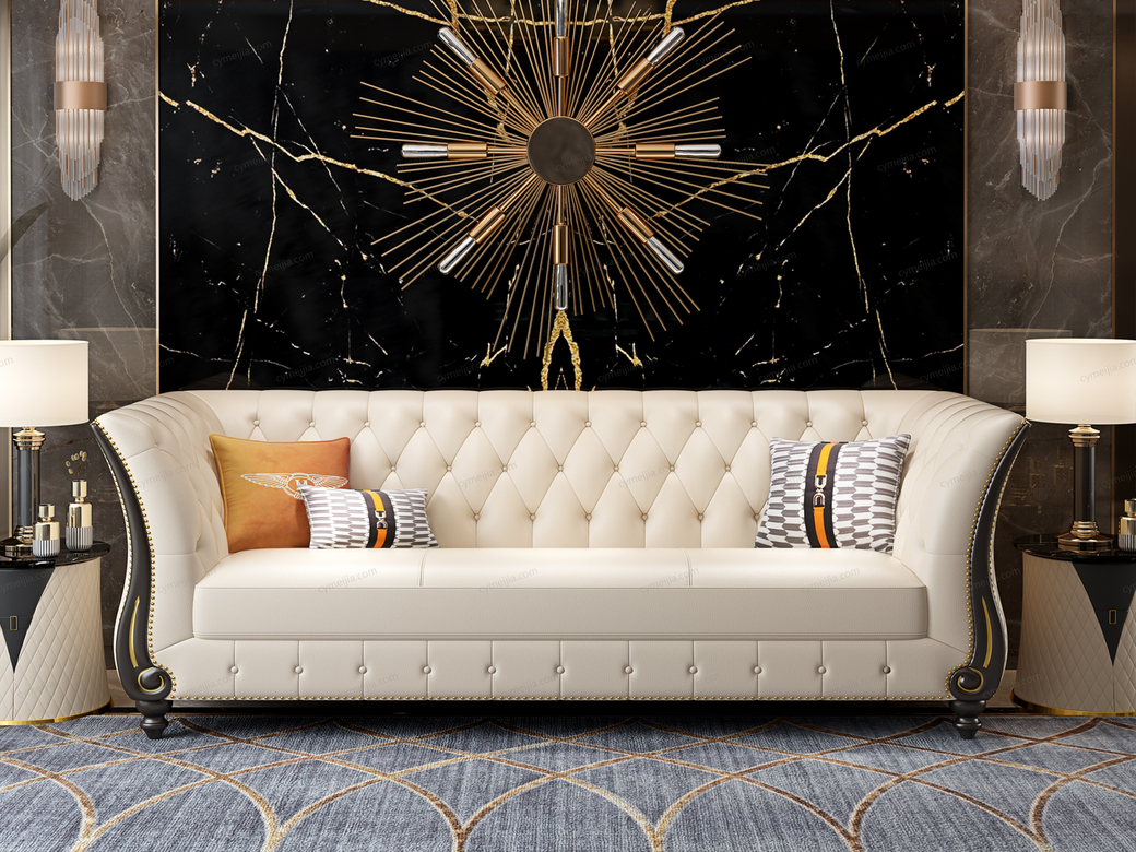 | 产品材质 : | 仿真皮+高密度海绵+俄罗斯落叶松实木框架+不锈钢镀金 |
