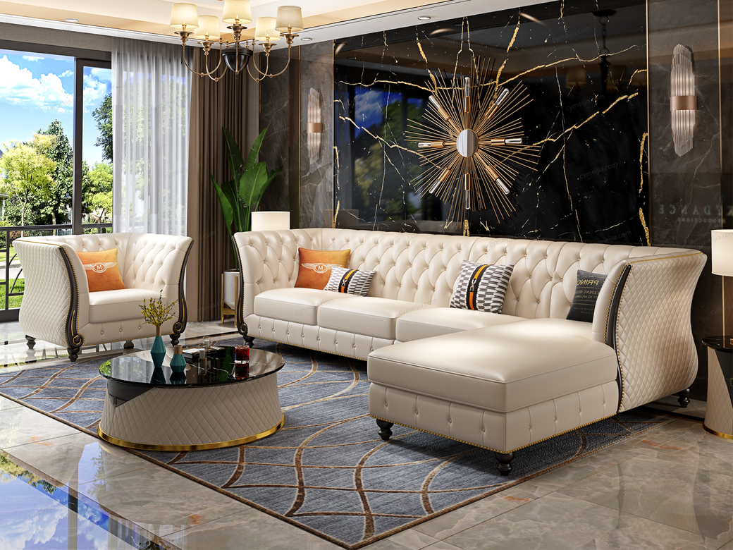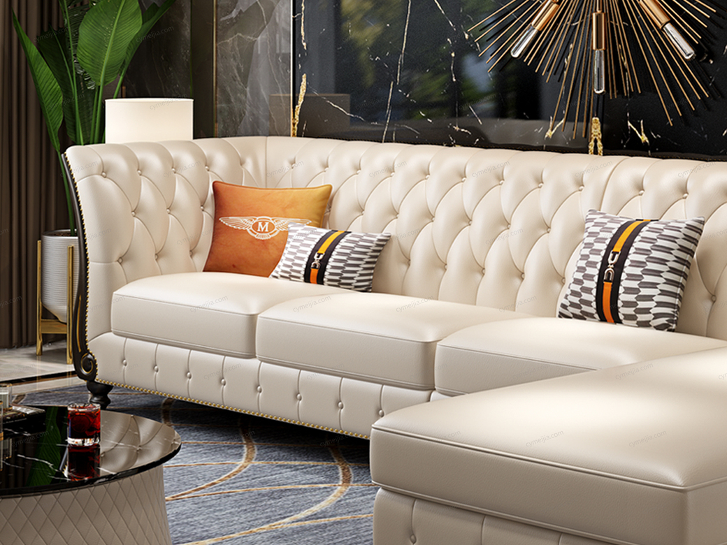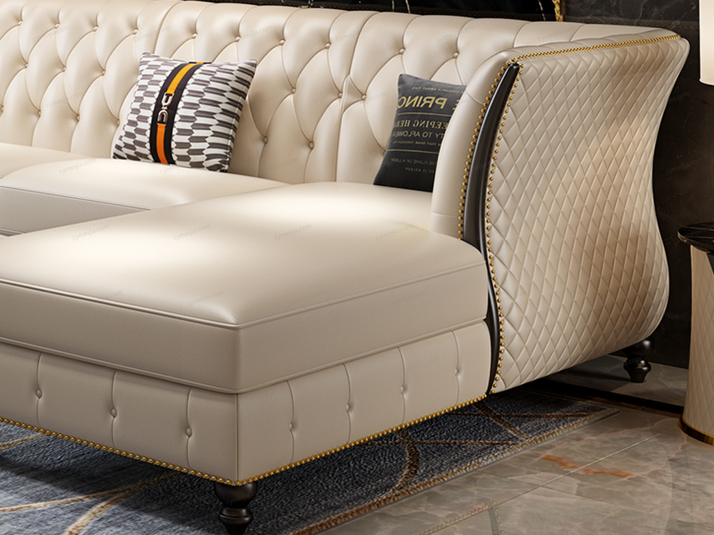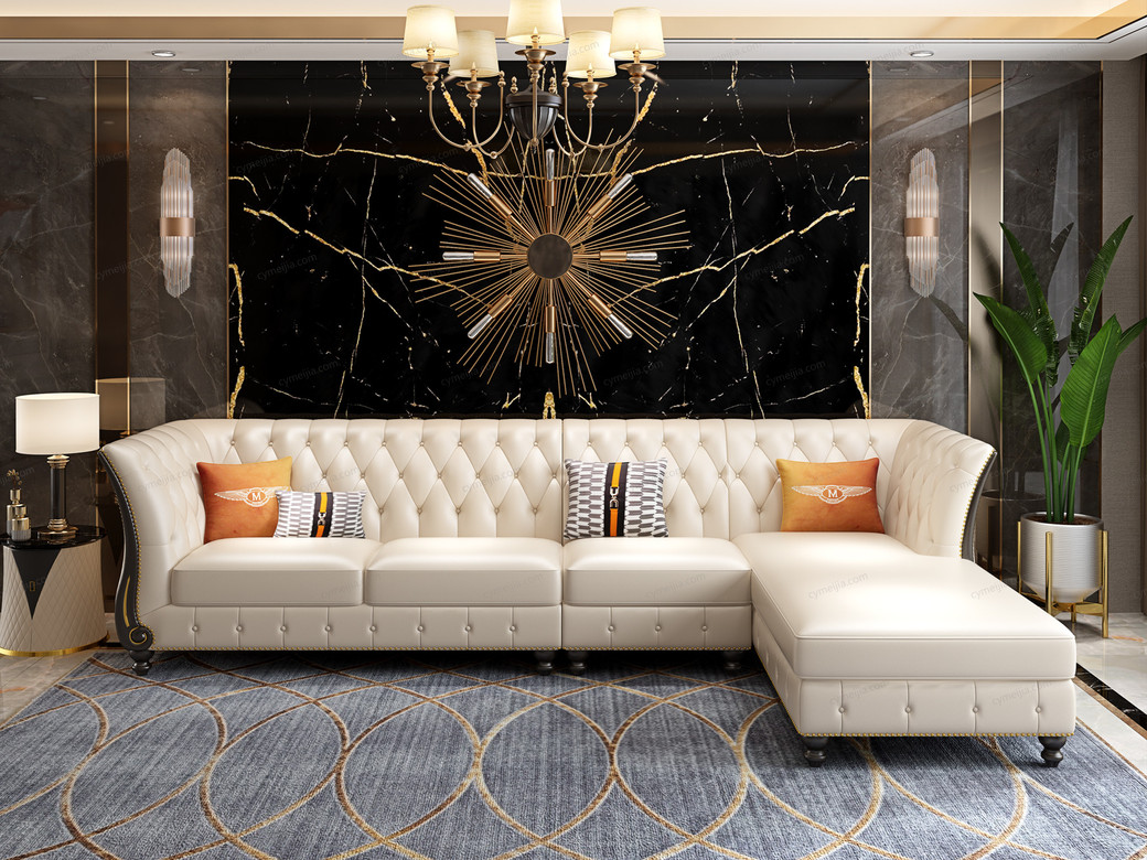| 产品材质 : | 仿真皮+高密度海绵+俄罗斯落叶松实木框架+不锈钢镀金 |