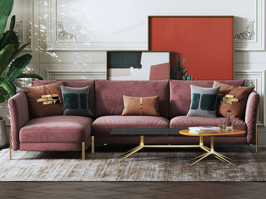| 产品材质 : | 仿真皮+羽绒(大靠包)+高密度海绵+俄罗斯落叶松实木框架+不锈钢镀金 |