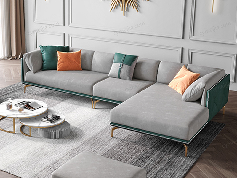 | 产品材质 : | 仿真皮+羽绒靠包/扶手+高密度海绵+俄罗斯落叶松全实木框架+不锈钢镀金脚 |