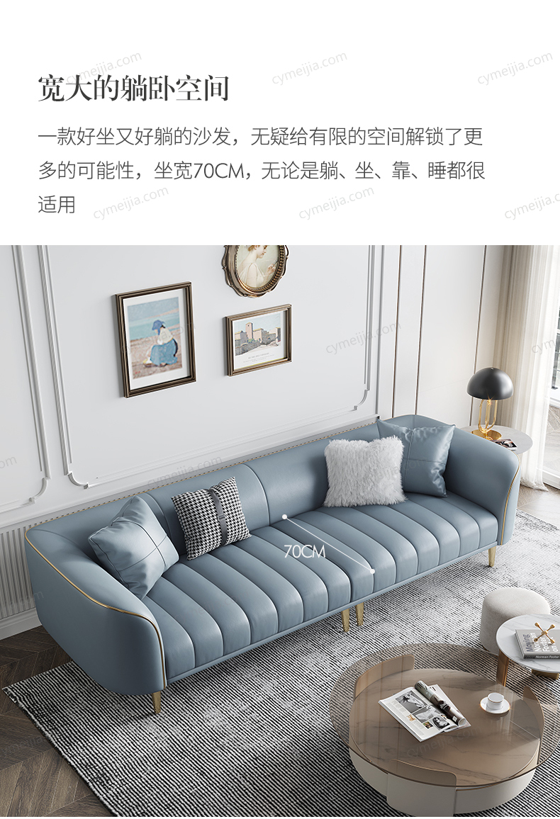 | 产品材质 : | 仿真皮+羽绒+高密度海绵+俄罗斯落叶松实木框架+不锈钢镀金脚 |