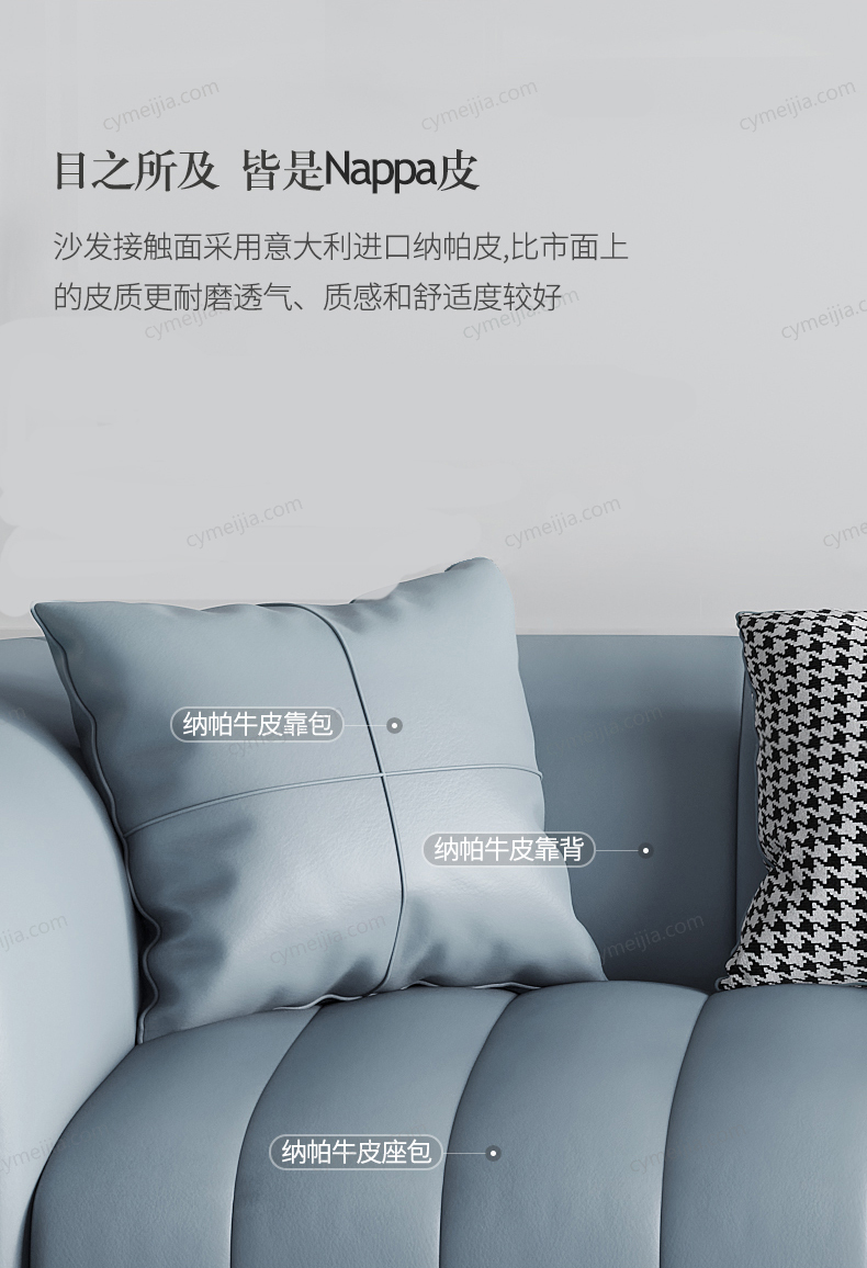 | 产品材质 : | 仿真皮+羽绒+高密度海绵+俄罗斯落叶松实木框架+不锈钢镀金脚 |