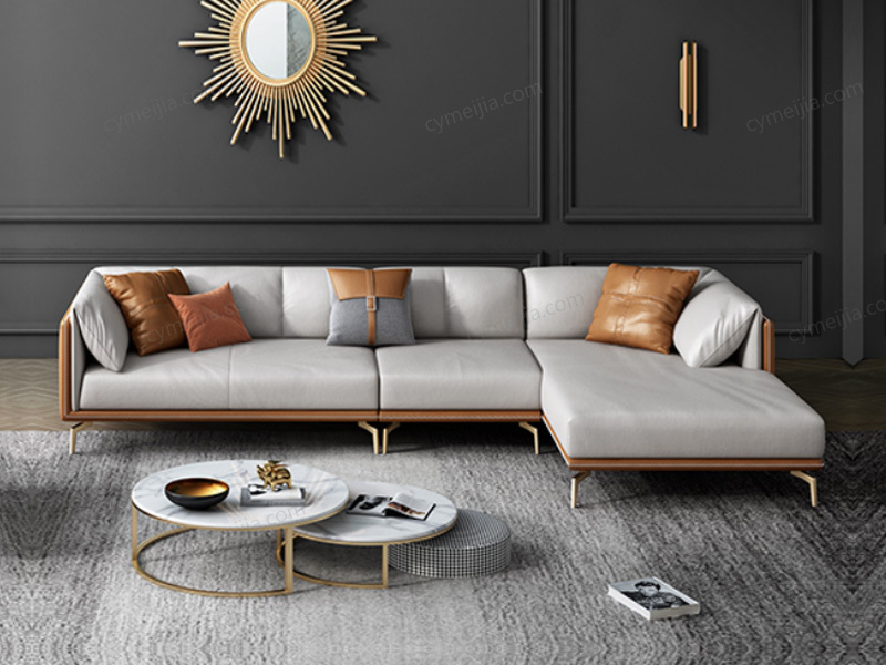 | 产品材质 : | 接触面进口头层黄牛皮+羽绒靠包/扶手+高密度海绵+俄罗斯落叶松全实木框架+不锈钢镀金脚 |
