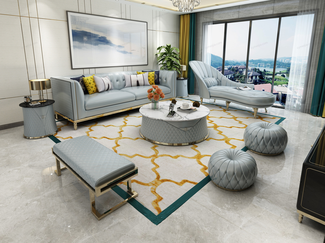 | 产品材质 : 仿真皮+高密度海绵+俄罗斯落叶松实木框架+不锈钢镀金 | 包件数 : 3 | 包装体积(m3) : 2.76 | |