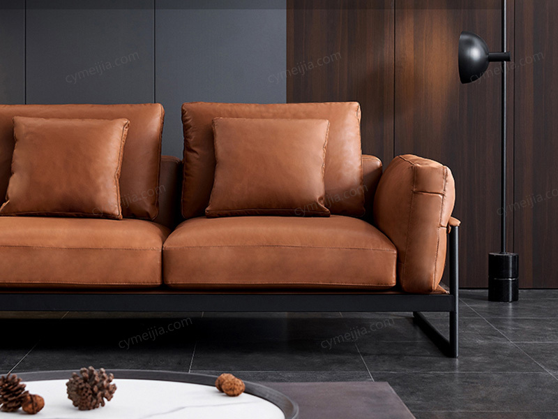| 产品材质 : | 接触面进口头层黄牛皮+羽绒靠包/座包+高密度海绵+四面刨光桉木方加松木方+进口4.0蛇形弹簧+加宽橡筋+碳素钢铁架 |