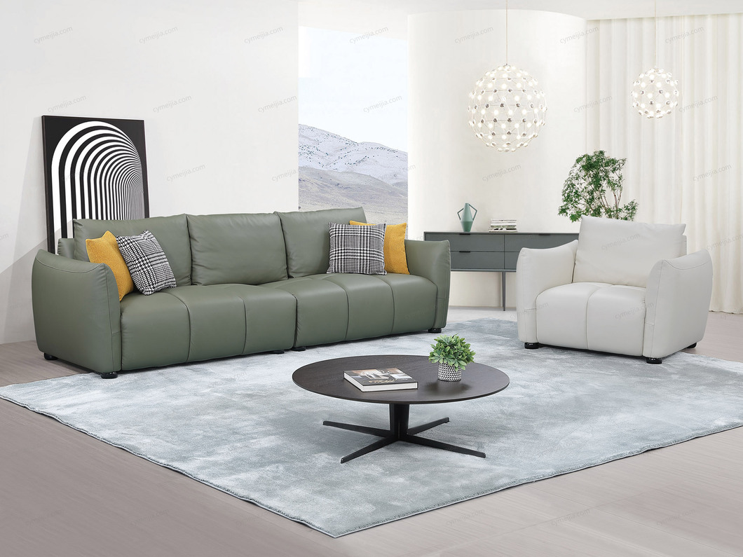 | 产品材质 : | 框架:进口俄罗斯落叶松+松木板结合,四面封板、结实牢固;海绵:座包由高密度海绵填充,回弹性好,坐感软硬适中;面料:接触面进口头层黄牛皮;靠包:由柔软的羽绒填充,柔软舒适。 |