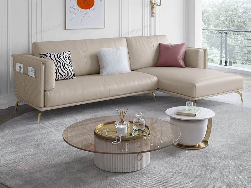 | 产品材质 : | 接触面进口头层黄牛皮+鹅绒羽绒靠包+高密度海绵+俄罗斯落叶松实木框架+不锈钢镀金脚 |
