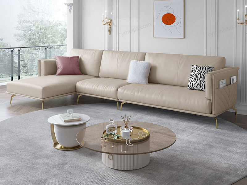 | 产品材质 : | 接触面进口头层黄牛皮+鹅绒羽绒靠包+高密度海绵+俄罗斯落叶松实木框架+不锈钢镀金脚 |