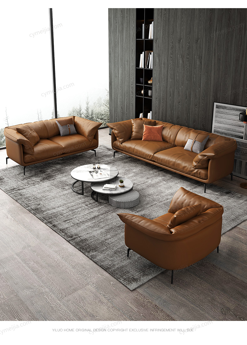 | 产品材质 : | 接触面进口头层黄牛皮+白鹅羽绒靠包+高密度海绵+俄罗斯落叶松实木框架+碳素钢脚 |