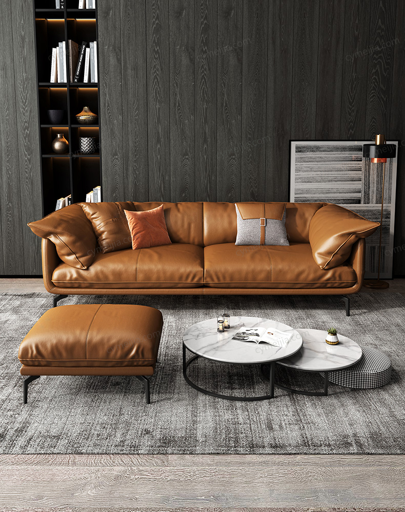 | 产品材质 : | 仿真皮+白鹅羽绒靠包+高密度海绵+俄罗斯落叶松实木框架+碳素钢脚 |