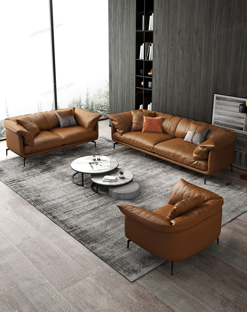 | 产品材质 : | 仿真皮+白鹅羽绒靠包+高密度海绵+俄罗斯落叶松实木框架+碳素钢脚 |