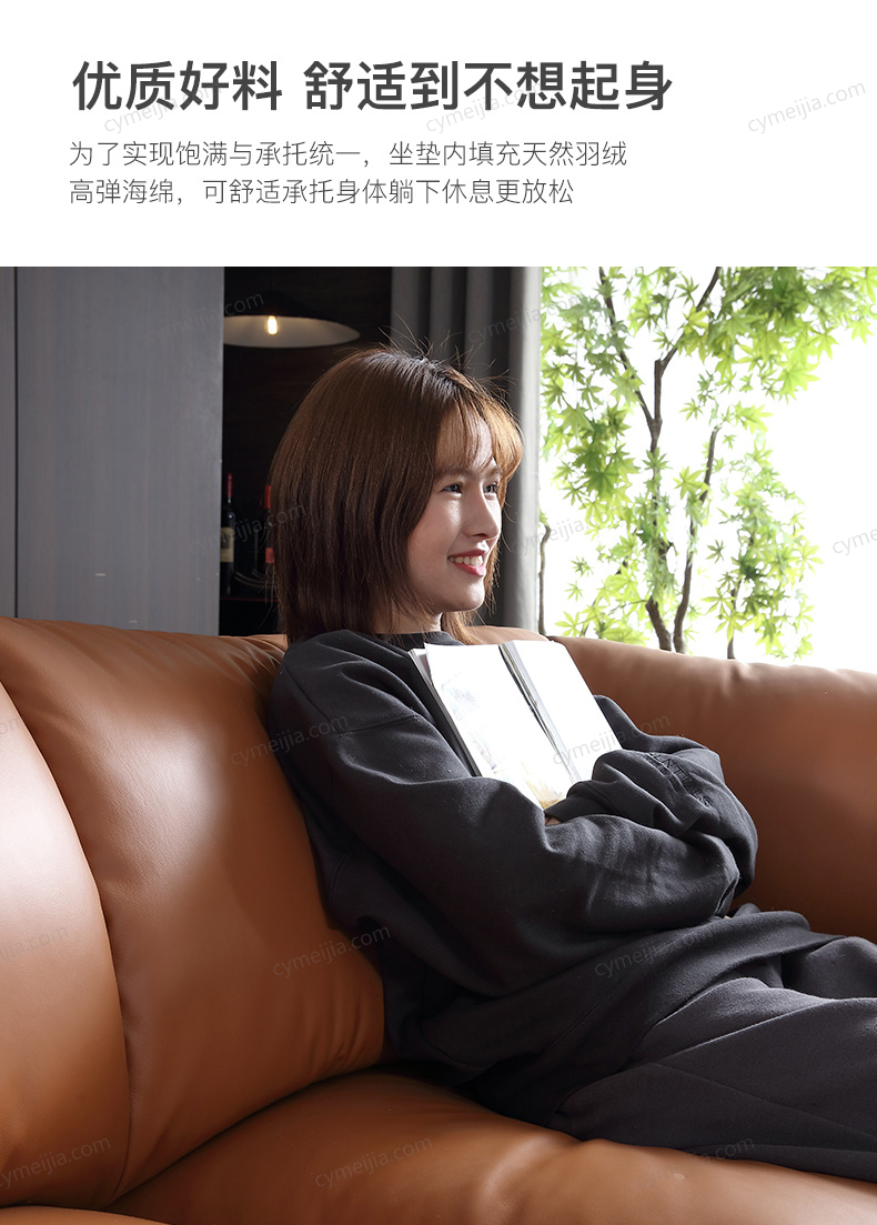 | 产品材质 : | 科技布+白鹅羽绒靠包+高密度海绵+俄罗斯落叶松实木框架+碳素钢脚 |