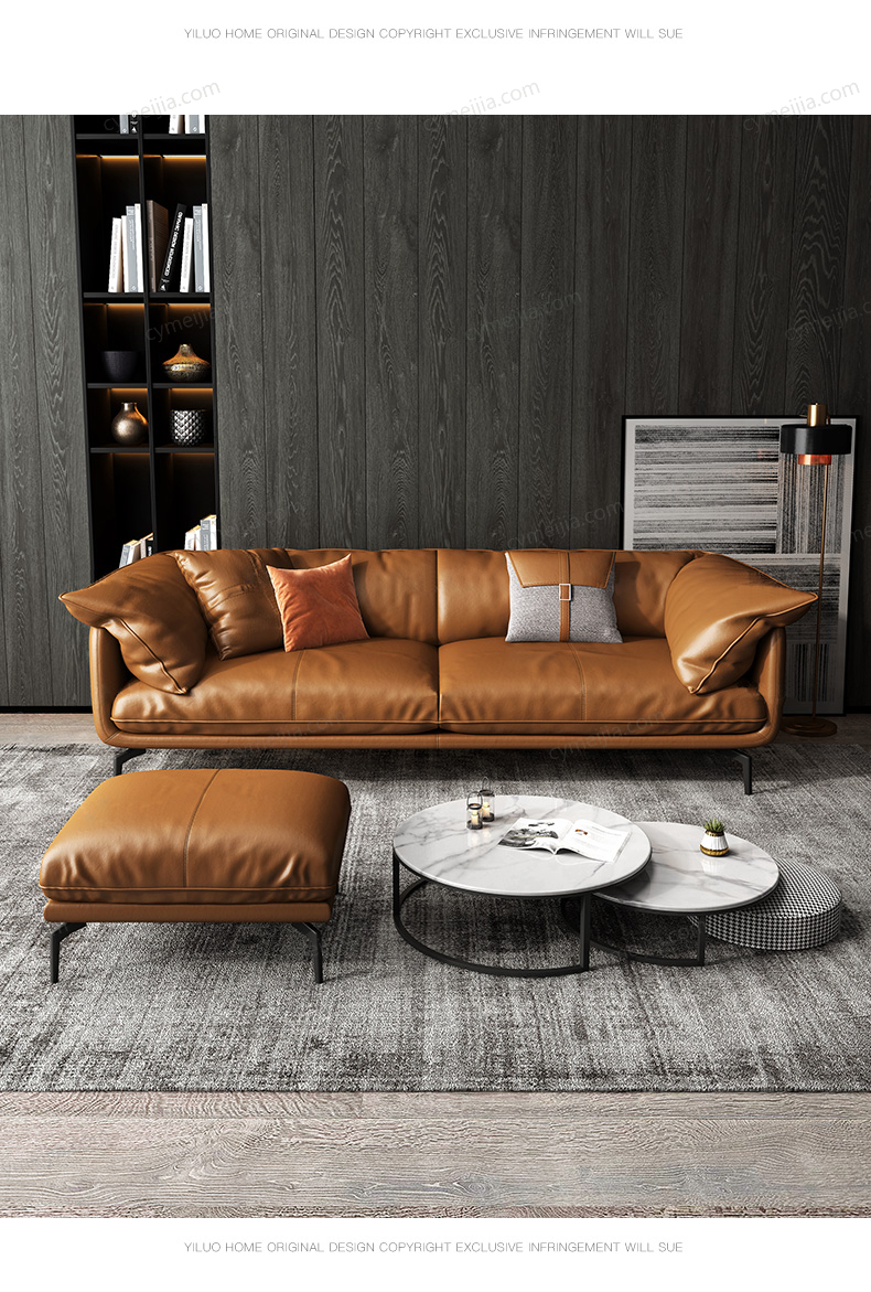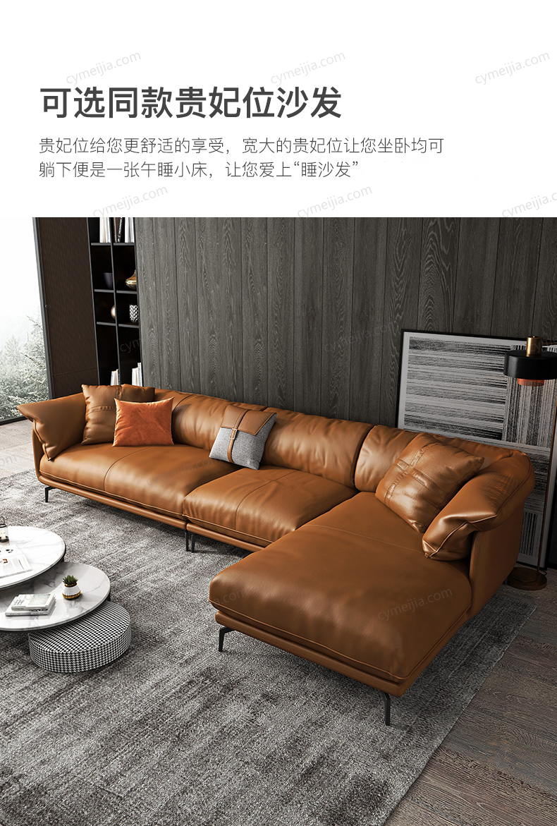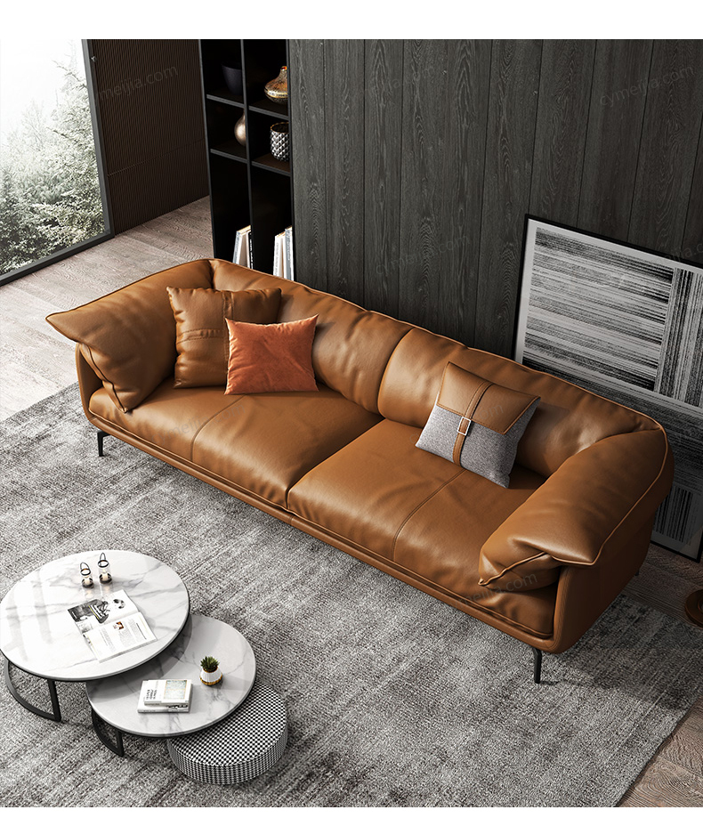 | 产品材质 : | 接触面进口头层黄牛皮+白鹅羽绒靠包+高密度海绵+俄罗斯落叶松实木框架+碳素钢脚 |