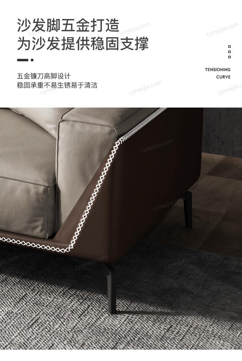 | 产品材质 : | 仿真皮+白鹅羽绒靠包+高密度海绵+俄罗斯落叶松实木框架+碳素钢脚 |