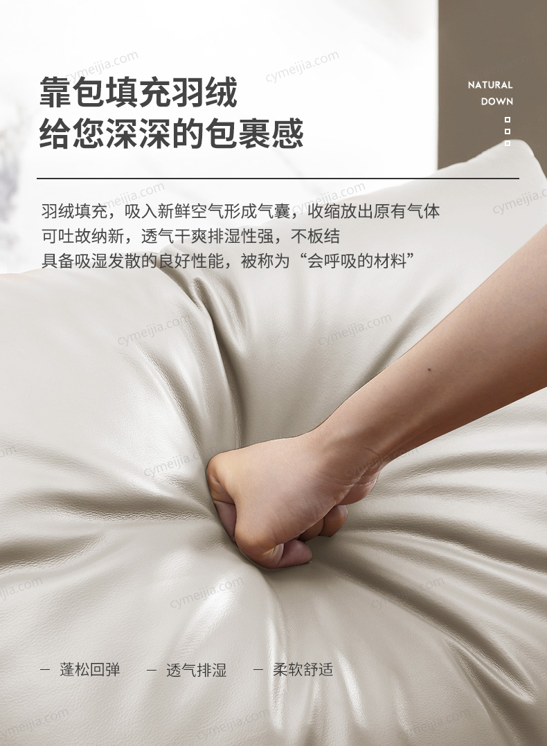 | 产品材质 : | 接触面进口头层黄牛皮+白鹅羽绒靠包+高密度海绵+俄罗斯落叶松实木框架+碳素钢脚 |