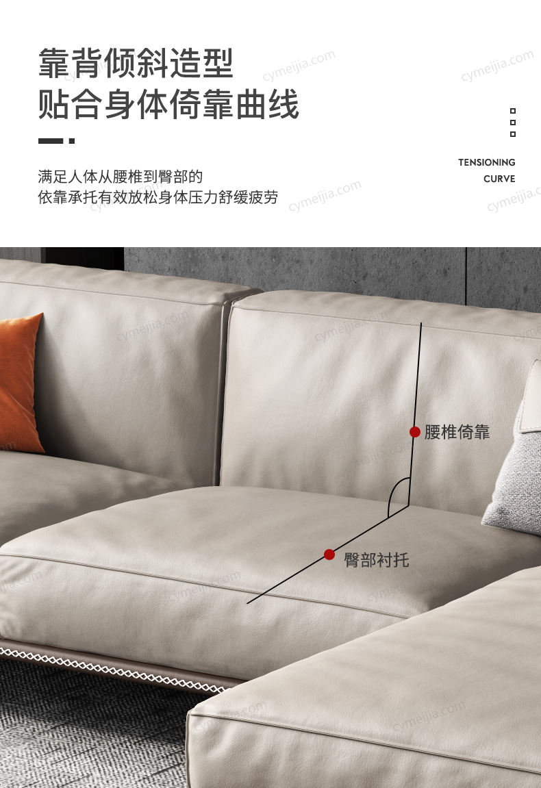 | 产品材质 : | 接触面进口头层黄牛皮+白鹅羽绒靠包+高密度海绵+俄罗斯落叶松实木框架+碳素钢脚 |