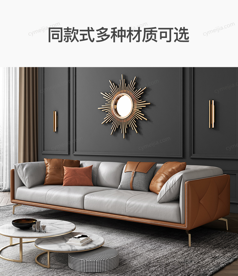 | 产品材质 : | 科技布+白鹅羽绒靠包+高密度海绵+俄罗斯落叶松实木框架+碳素钢脚 |
