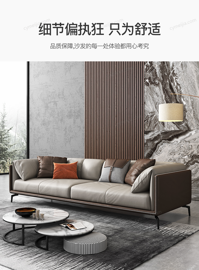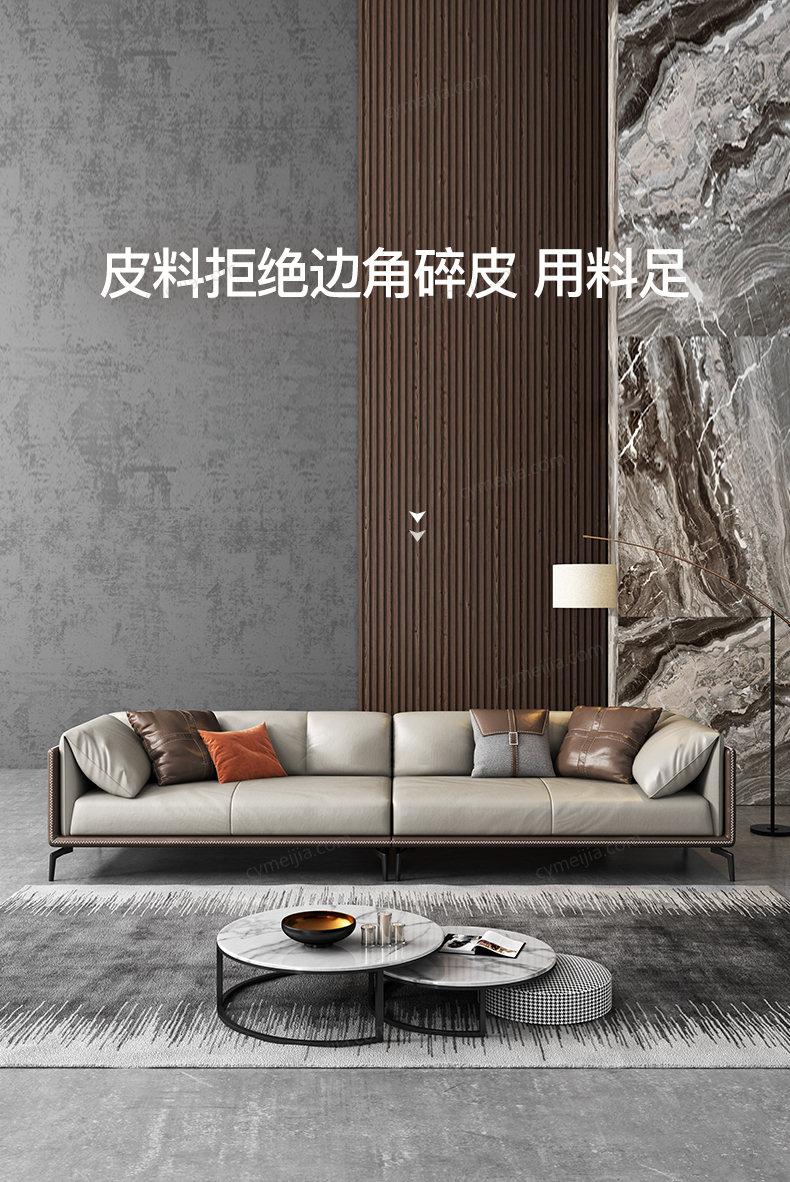 | 产品材质 : | 仿真皮+白鹅羽绒靠包+高密度海绵+俄罗斯落叶松实木框架+碳素钢脚 |