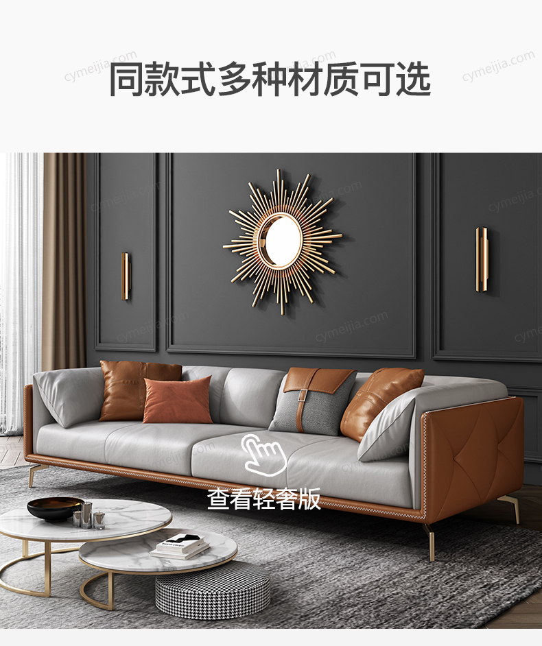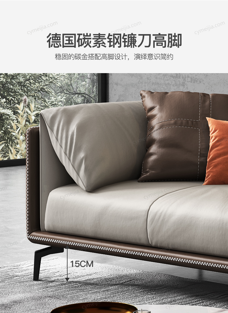 | 产品材质 : | 接触面进口头层黄牛皮+白鹅羽绒靠包+高密度海绵+俄罗斯落叶松实木框架+碳素钢脚 |