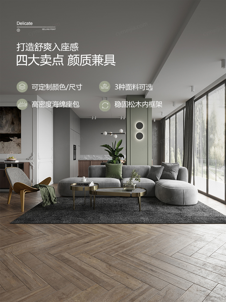 | 产品材质 : 优质绒布+高密度海绵+俄罗斯落叶松实木框架 | 包件数 : 3 | 包装体积(m3) : 1.44 | |